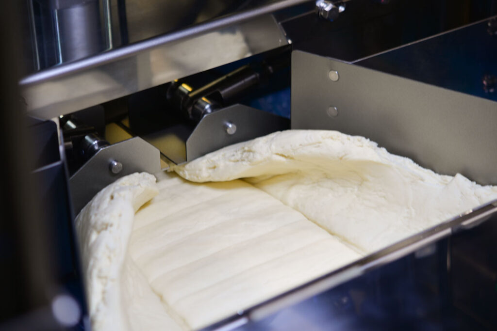 複合機ロール機圧延から切り出しまでを自動で行える、毎時2000食の大量生産を実現する大型製麺機
